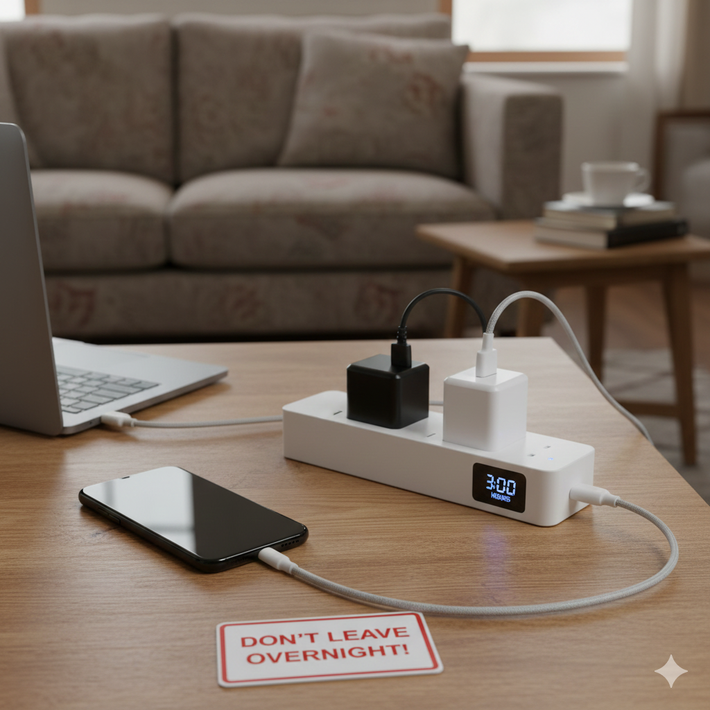 - Smart Plugs: Set timers to stop overnight charging.