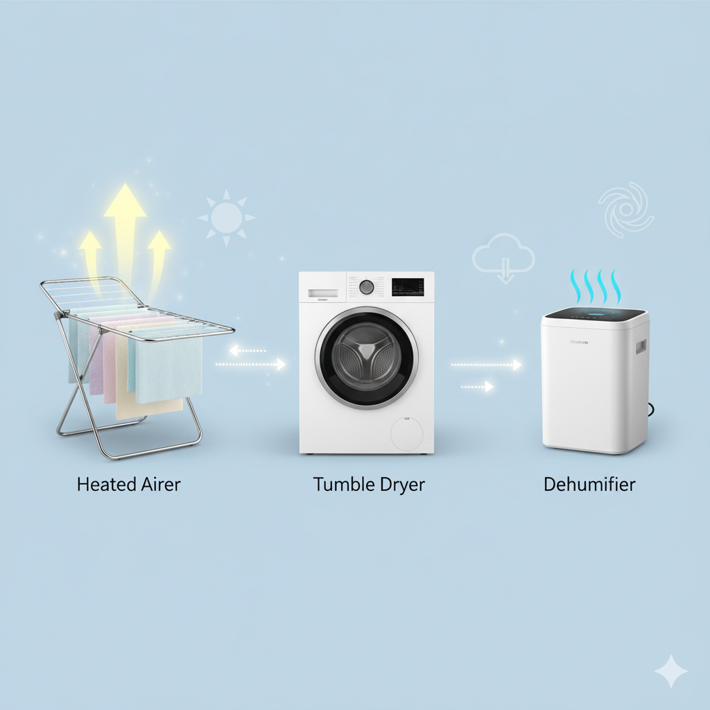 A full comparison of every drying method — heated airers, tumble dryers, dehumidifiers, and natural air drying — ranked by real running costs. - How to Combine a Heated Airer and Dehumidifier for Maximum Drying Efficiency
