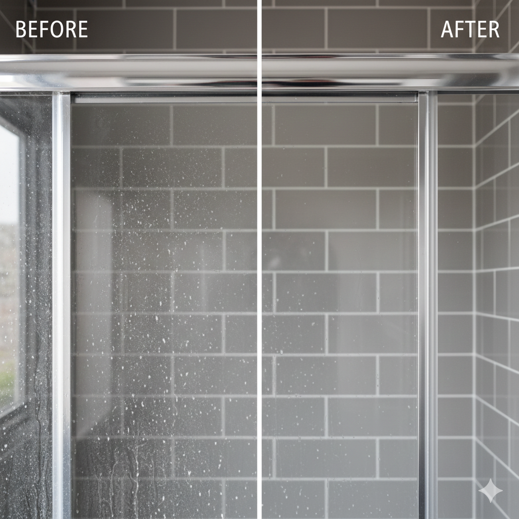👉 If your shower is cleaned regularly, vinegar is enough. If you’ve let limescale build up, a descaler is the faster fix.